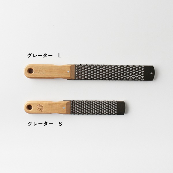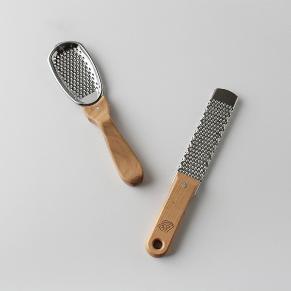 チェリーウッド材のハンドルでチーズはもちろん、野菜の千切りにも便利。Sサイズはしょうがのすりおろしにも。スプーン型は削ったチーズがスプーン状部分にたまり、削った量を直ぐに確認出来るようになっています。