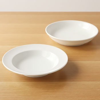 白い丸プレートやスクエアプレートと同じシリーズ。パスタやカレーはもちろん、サラダやスープなどにもおすすめです。B・B・B POTTERSのカフェでは、ランチにカレーライスをこの「リムあり」でサーブしています。