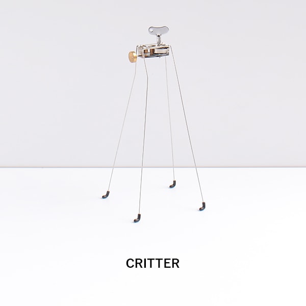 片手に収まるサイズ感のゼンマイ仕掛けのオモチャシリーズ。ネジを回すと内部のゼンマイが動き、コミカルな動きをして楽しませてくれます。