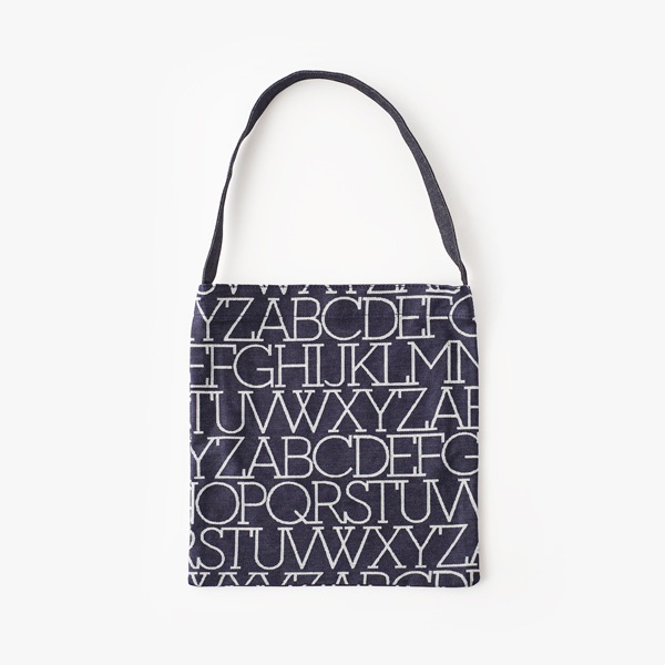ハウスインダストリーズのフォントが織りで表現されたワンショルダーバッグ。デニム生地は広島で紡績から仕上げまで一貫生産を行うカイハラ社が製造しています。柔らかく、しなやかな肌ざわりのデニムです。