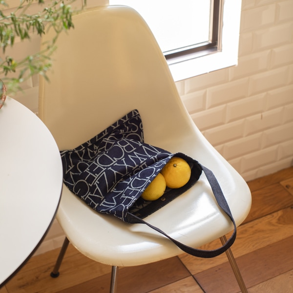 デザインと縫製は東京・中目黒のバックブランド「アトリエペネロープ」が手がけています。アルファベットパターンの魅力が引き立つ、シンプルながら飽きのこないデザインです。