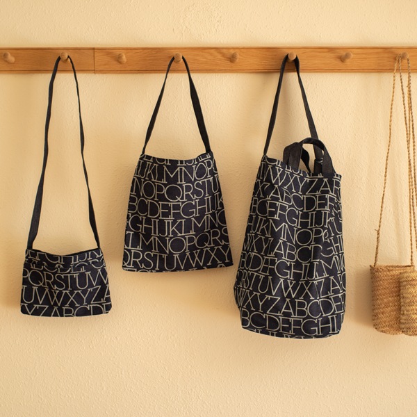 デザインと縫製は東京・中目黒のバックブランド「アトリエペネロープ」が手がけています。アルファベットパターンの魅力が引き立つ、シンプルながら飽きのこないデザインです。