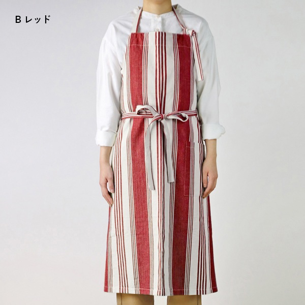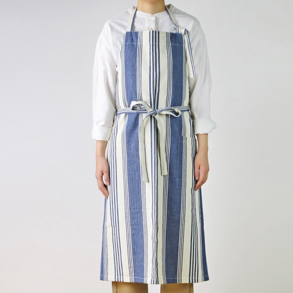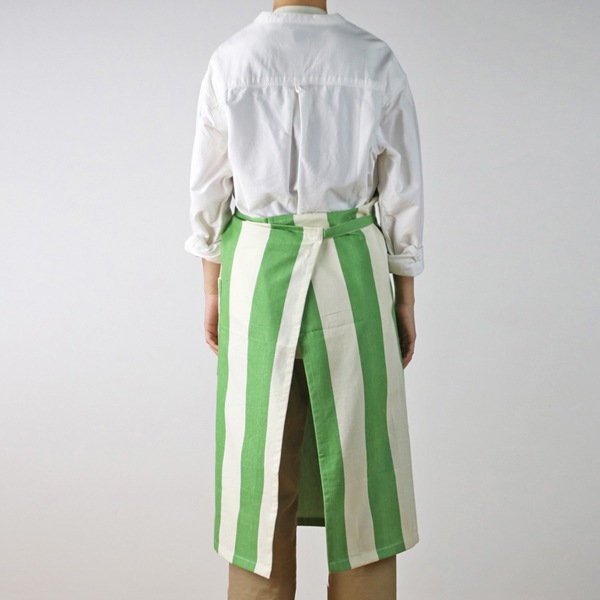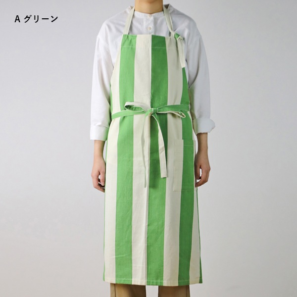 カラフルなストライプがさわやかな手織りのコットン100%のフルエプロン。