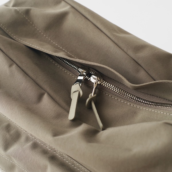 どんなスタイリングにも合わせやすい気品のあるグレージュカラー。生地の色だけではなくレザーパーツやテープなども同色に統一した特別仕様です。