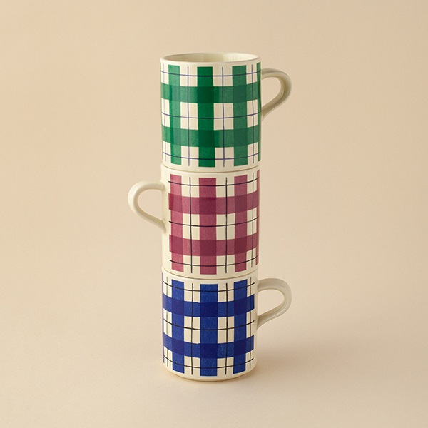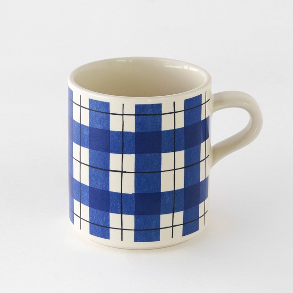 手作業ならではの優しいチェック柄が目を引くマグカップ。たっぷり310ml入るので朝ごはんやティータイムなど、さまざまな場面で活躍します。
