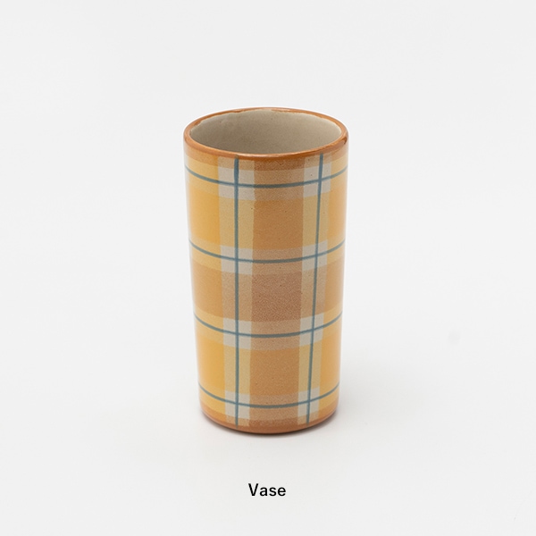 【Vase】手描きの温もりあるタータンが一面に施されたベースは季節の草花を気軽に生けるだけで、空間が華やぎます。どんなインテリアにもなじみ、暮らしに彩りを添えてくれます。