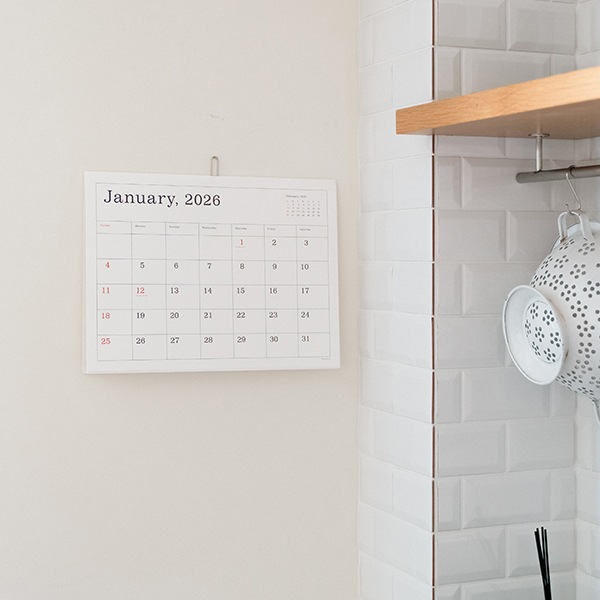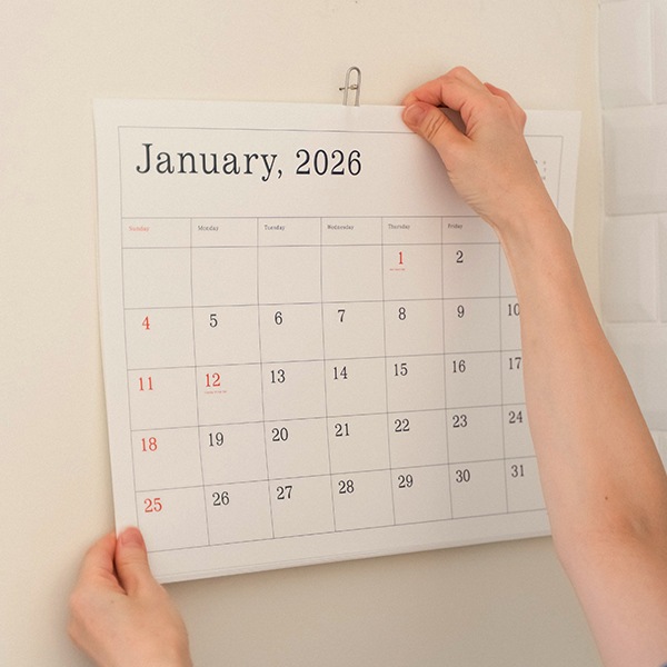 二つ折りになった六枚の紙を重ね、専用にデザインされたフック「Kハンガー」でまとめてあり、「裏返す」と「はずす」という動作で月を切り替えることができます。